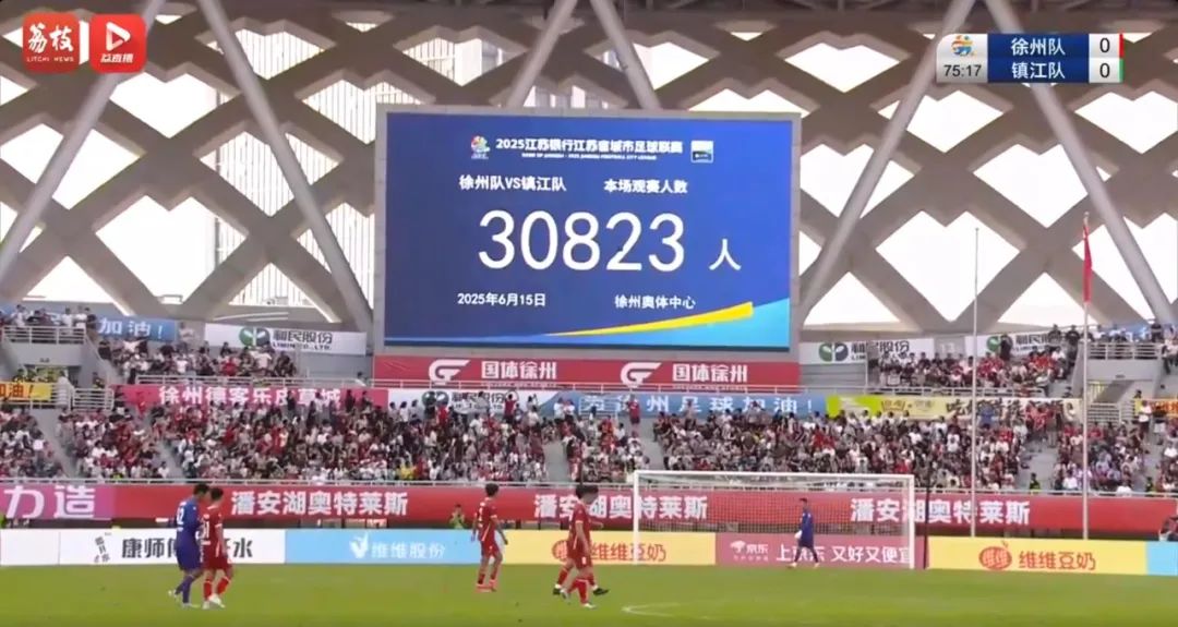 这是2025年江苏省城市足球联赛单场观众首次突破3万人大关!